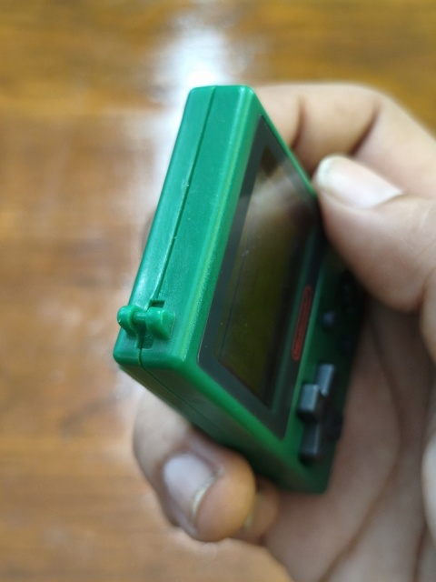 今回のものは「グリーン」で、同じ色ゲームボーイと比較してみたのですが、大体1/4くらいのサイズです。
