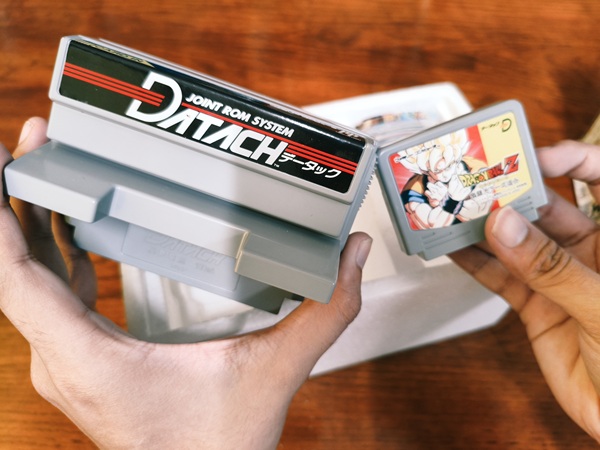 巨大なカートリッジとなっており、ファミコン本体のソフト端子に差し込んで使用する周辺機器です。