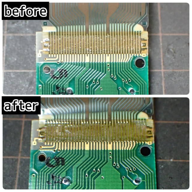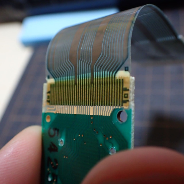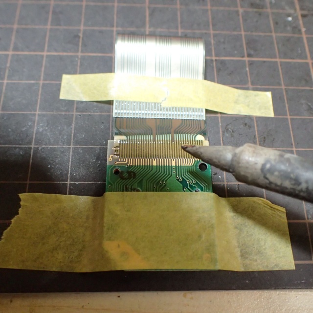 修理はハンダごての熱を使い、フレキシブルケーブルと基板の