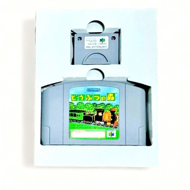 N64は、ゲームコントローラに差し込んで使用するコントローラパック(32Kバイトのメモリカード)にゲームデータをセーブする仕組みを採用していました。『どうぶつの森』は、コントローラパックに「おでかけデータ」を保存することで、友達がプレイする村(別のROMカセット)に遊びに行くことも可能でした。