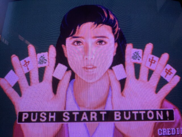 以前来た時は『麻雀 スーパー(禁)版』(ユウガ/1990)が、今回は『麻雀刺客』(日本物産/1988)が稼働し、常にお客さんが張り付いている密かな人気タイトルとなっていた。