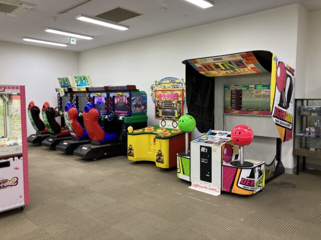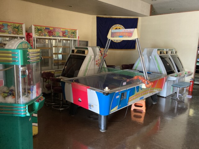 セガの『エキサイティングスピードホッケー』(1993)がドンと置かれ、同じくセガのクレーンゲーム『UFOあらかるとⅡ』(2004)が2台。初代『ワニワニパニック』(ナムコ/1989)に、お馴染みのアストロシティが計4台、電源も入れずに佇んでいた。