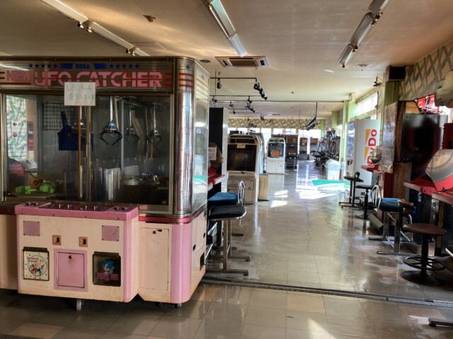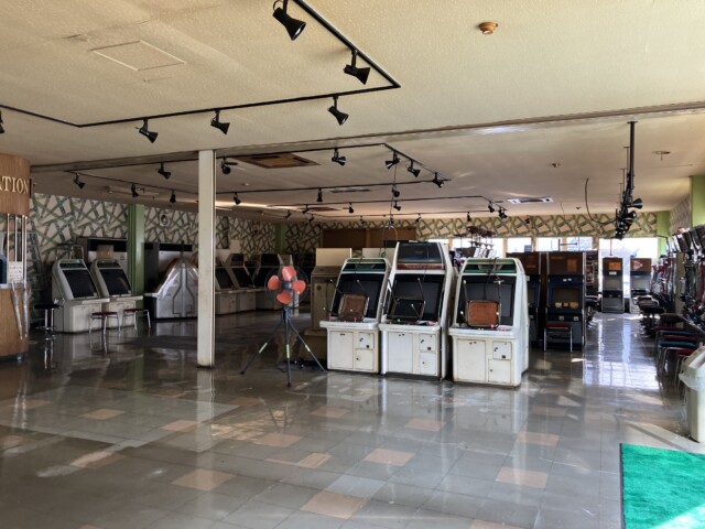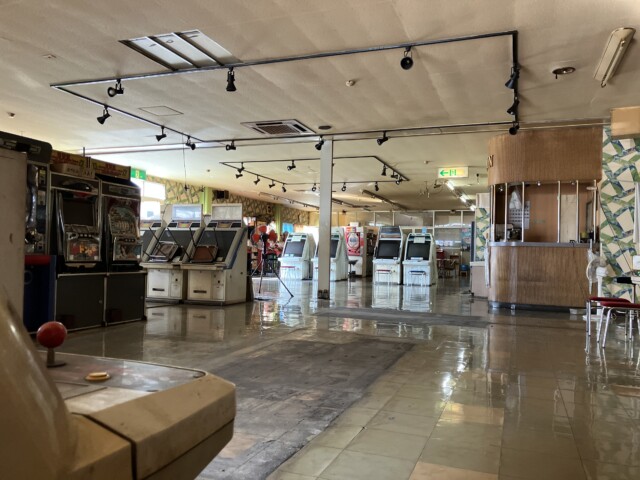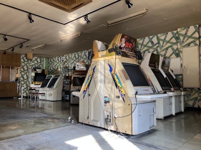 参考までに上の写真は2018年に訪れた時に撮影したもの。台の配置は今よりも整然としているが、時刻の関係もあり窓からあまり光が差し込まず、暗い廃墟のように見えた。店内に客は少なくてひっそり静まり返っており、なにか見てはいけないものを見てしまったような妙な罪悪感が残ったことを覚えている。写真を見比べてみると置かれている筐体は現在と変化なく、この時から7年間はただ静かに時が流れてきたようだった。