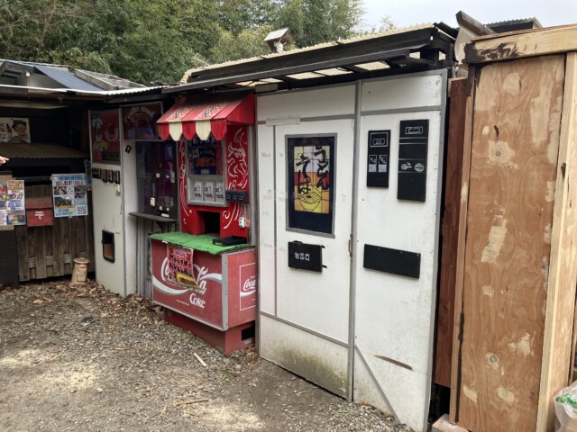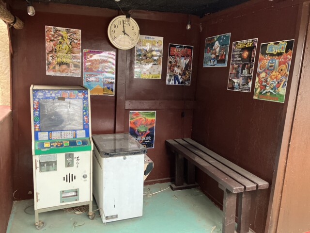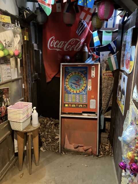 硬貨投入口はガムテープで塞がれているが、雰囲気づくりはバッチリ。ひとまず駄菓子を大量に購入してからお店の方にひと声かけ写真を撮らせてもらった。