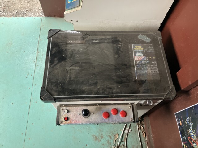 その隣には、あまり見たことのない箱型の筐体にレバーと3ボタンのコントロールパネルが付いたビデオゲーム機。インストラクションカードには「61種類のゲームが…」とあるのでどうやらエミュ機のようだ。こちらもホコリが積もっていて動くようには見えない。よく観察するとデルの液晶モニタが妙な具合に配置されてるし……。どれも活用すればそれなりに集金できそうだし、ちょっともったいない。