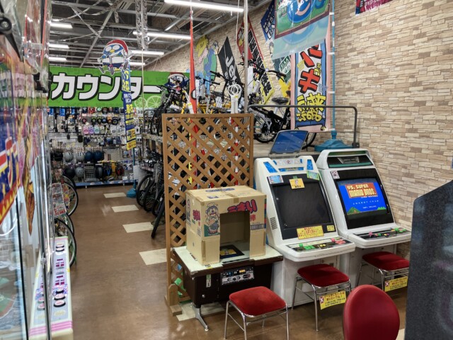 午後6時を回る頃、ようやく北総線・京成成田空港線をまたいで本日の最終目的地に到達した。イオンモール千葉ニュータウンの少し離れたエンジョイライフ棟にあるドン・キホーテ。その自転車売場の隣の一角がこぢんまりとしたゲームコーナーになっているのだ。