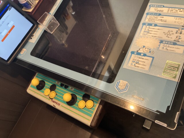 インストラクションカードのタイトルは隠れて見えないが、クレジット表記の年号から推測するに『SUPERワールドスタジアム』(ナムコ/1991)のようだ。