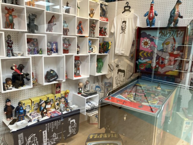 入口付近のショーケースからものすごい物量の展示がされており、日本とアメリカを中心としたグッズのチョイスにはさすがのデザイナーセンスを感じる。テーマ性のある展示というよりは、緩やかにリンクする思考と感性の配置がコレクター心に心地よく響いてくる。