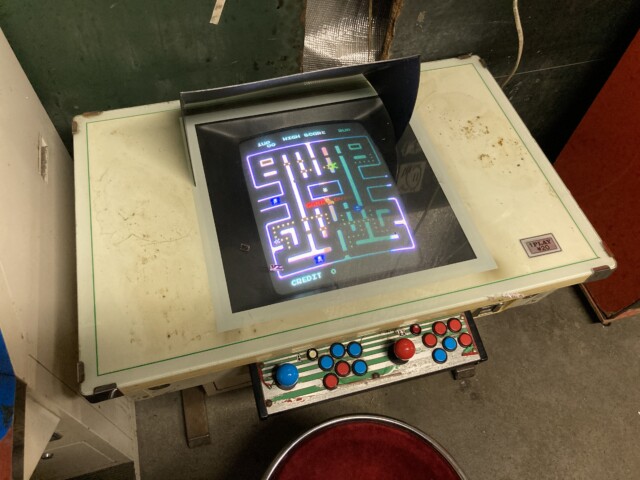 『ファイナルファイト』『ボンバーマン』が1プレイ50円。テーブル筐体に入っていたなんか気味の悪いパックマンのデッドコピー品は1プレイ20円。