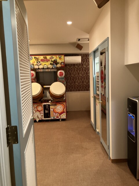 意味もなく少し緊張してドアノブを回すと、すぐに見えたのはお馴染み『太鼓の達人』のあの筐体だ。