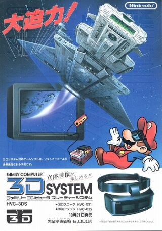 当時のチラシには、マリオが本機を装着して3Dになった写実的な宇宙戦艦の迫力に驚いているイラストでした。
