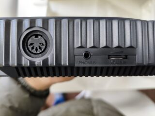 ヘッドホン端子と音量ダイヤル: 本体前面に、専用のヘッドホン端子とスライド式のボリューム調整ダイヤルを備えています。夜間の隠れプレイや、CD-ROM2の生音をじっくり聴きたいファンには堪らない装備でした。