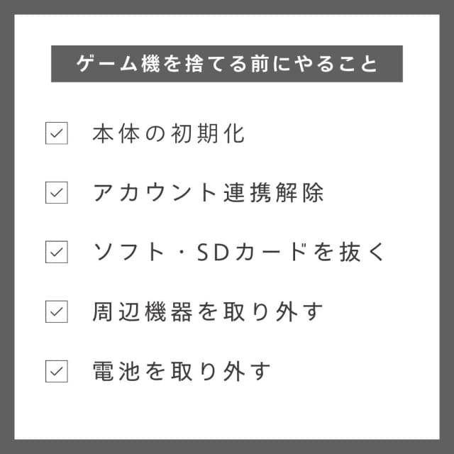 ゲーム機を捨てる前に、本体に差しっぱなしになりやすいものを1度すべて取り外すことが必要です。